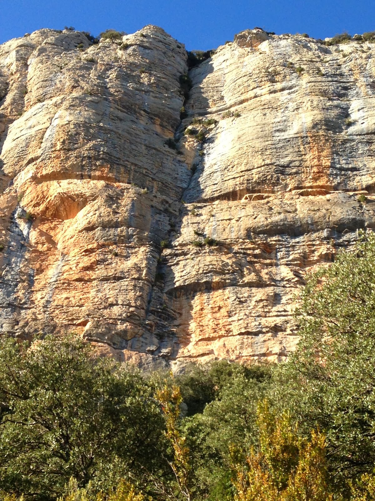 Tenim el blog plè de terenyines. Aprofitant un dia de festa entre setmana, ens escapem amb en Toni per anar a escalar, i és que ganes no ens en falten. Com sempre, canviem d'opinió sobre la marxa, i finalment decidim d'apropar-nos a Vilanova de Meià, que fa molt que no ens hi passem. La via, la Montse Pueyo, que estava apuntada a la llista des de que la van restaurar.